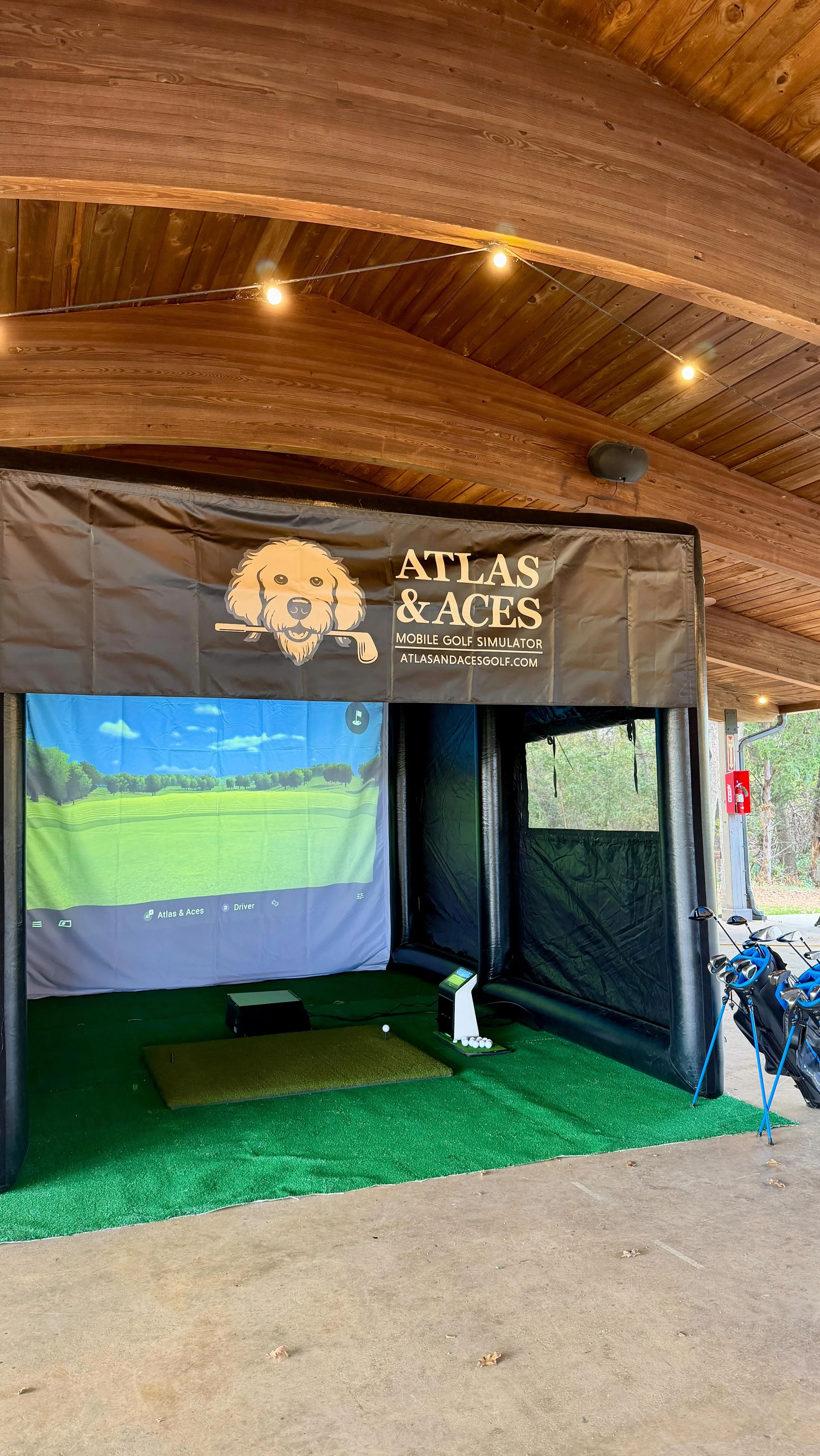 At Atlas & Aces, we deliver unforgettable mobile golf simulator experiences straight to your backyard, business, or big eventβbecause golf is better when it comes to you. Inspired by our four-legged mascot Atlas (yes, heβs realβand yes, heβll probably steal your snack), we bring serious fun to every swing, while quietly doing some good behind the scenes. A portion of every event goes toward helping rescue dogs find their forever homes, because we believe joy should be sharedβon the course, and off it.